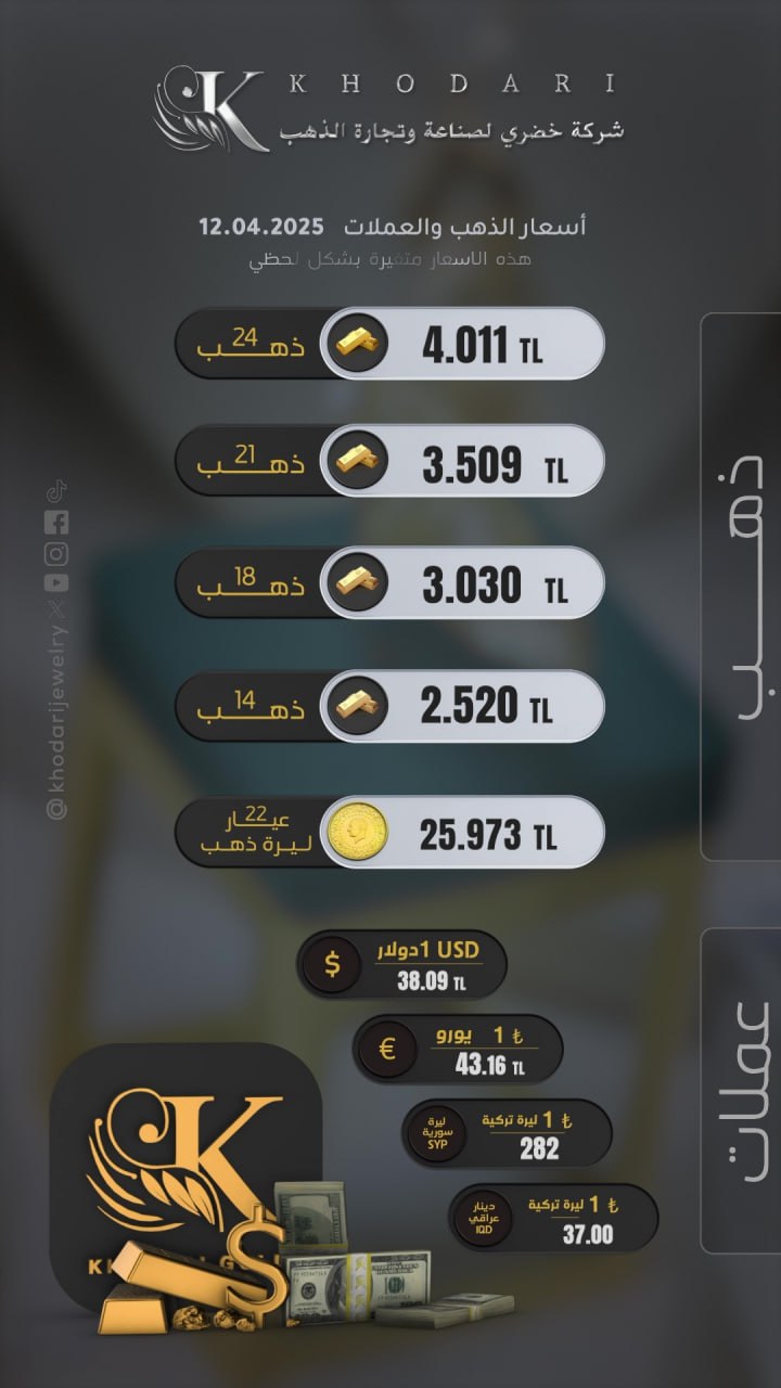 سعر غرام الذهب يوم السبت 2025-04-12 - سعر الليرة التركية امام الدولار اليوم