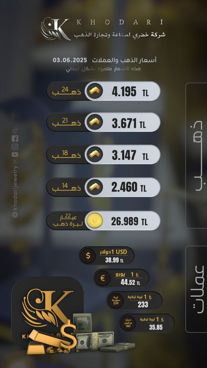 سعر غرام الذهب يوم الاثنين 2025-06-02 - سعر الليرة التركية امام الدولار اليوم