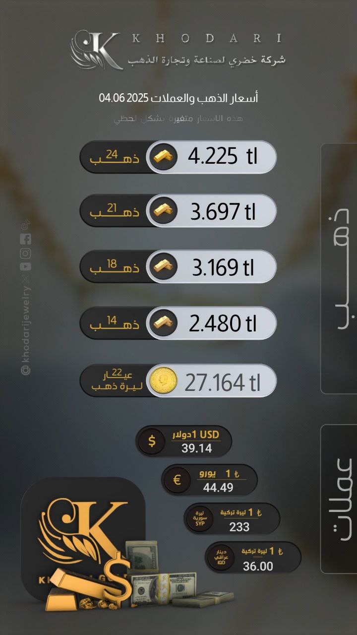 سعر غرام الذهب يوم الثلاثاء 2025-06-03 - سعر الليرة التركية امام الدولار اليوم