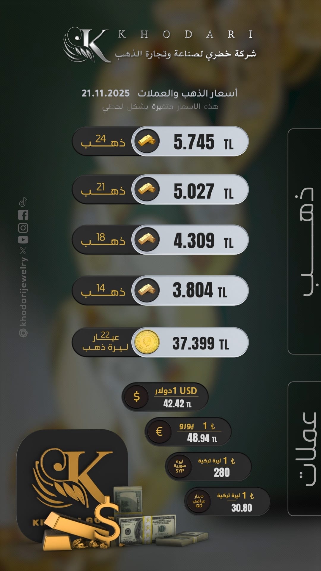 • لوحة أسعار الذهب والعملات المباشرة