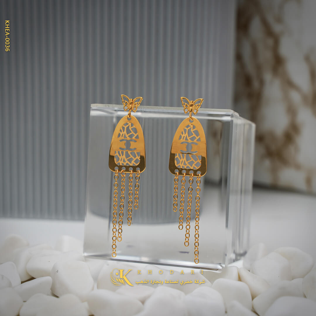 قرط ذهبي عيار 21 قيراط بتصميم أنيق